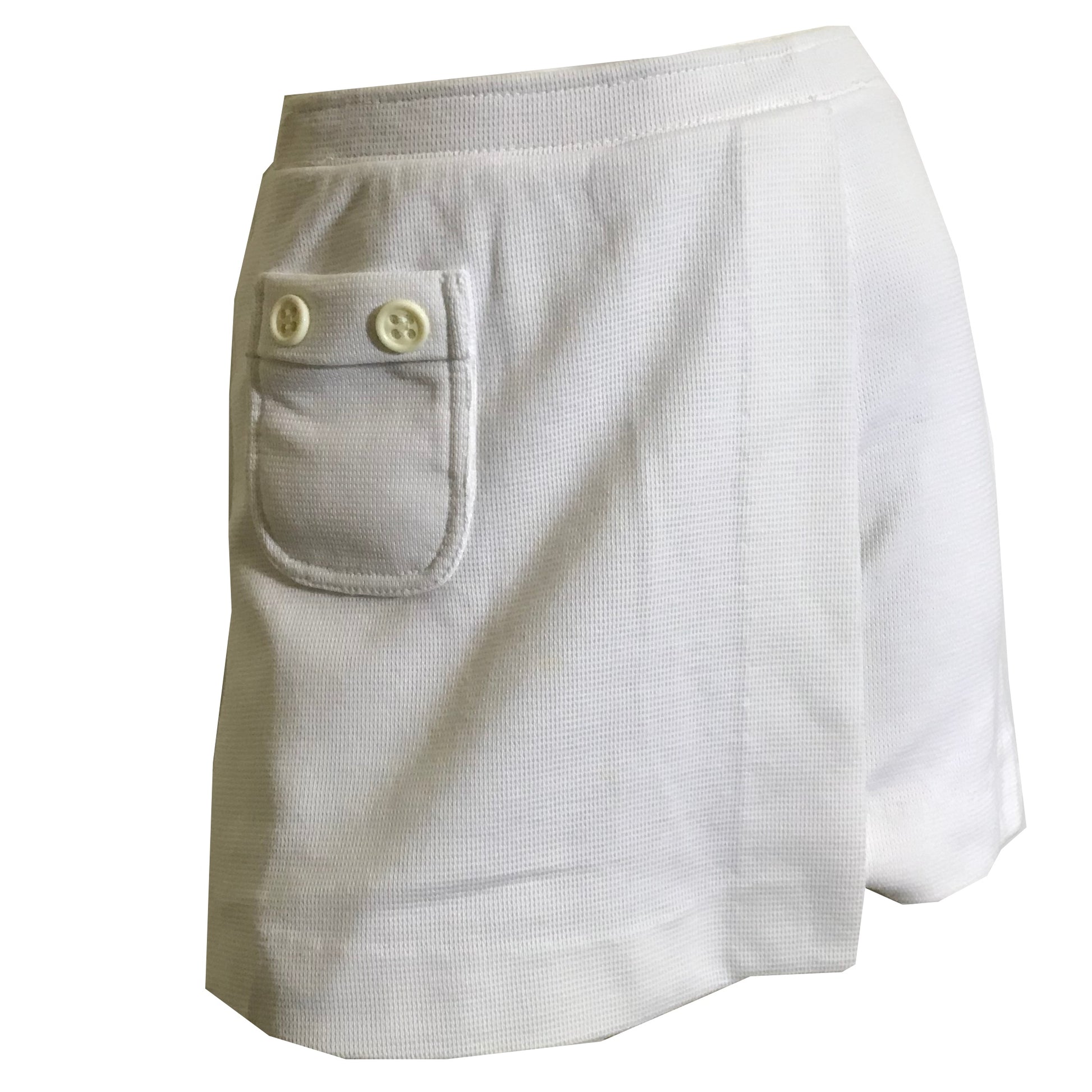 1970s white textured polyester tennis skirt/skort with elastic waist, button accent. By Jantzen 4 Juniors. No flaws.